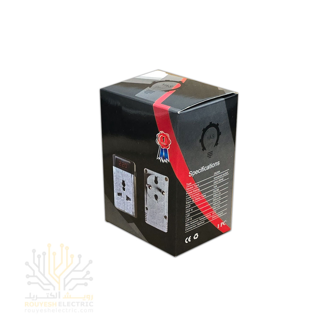 تبدیل 3 به 2 محافظ دار دیجیتال 2 ورودی برند یاس مدل 001 تایمر قابل تنظیم 10 تا 16 آمپر بدنه طرح سرامیک