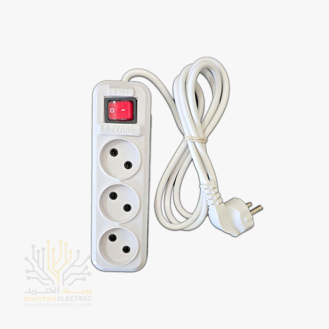 سه راهی برق سیار برند افق مدل 303 استاندارد کلید دار کابل 1/8 متری