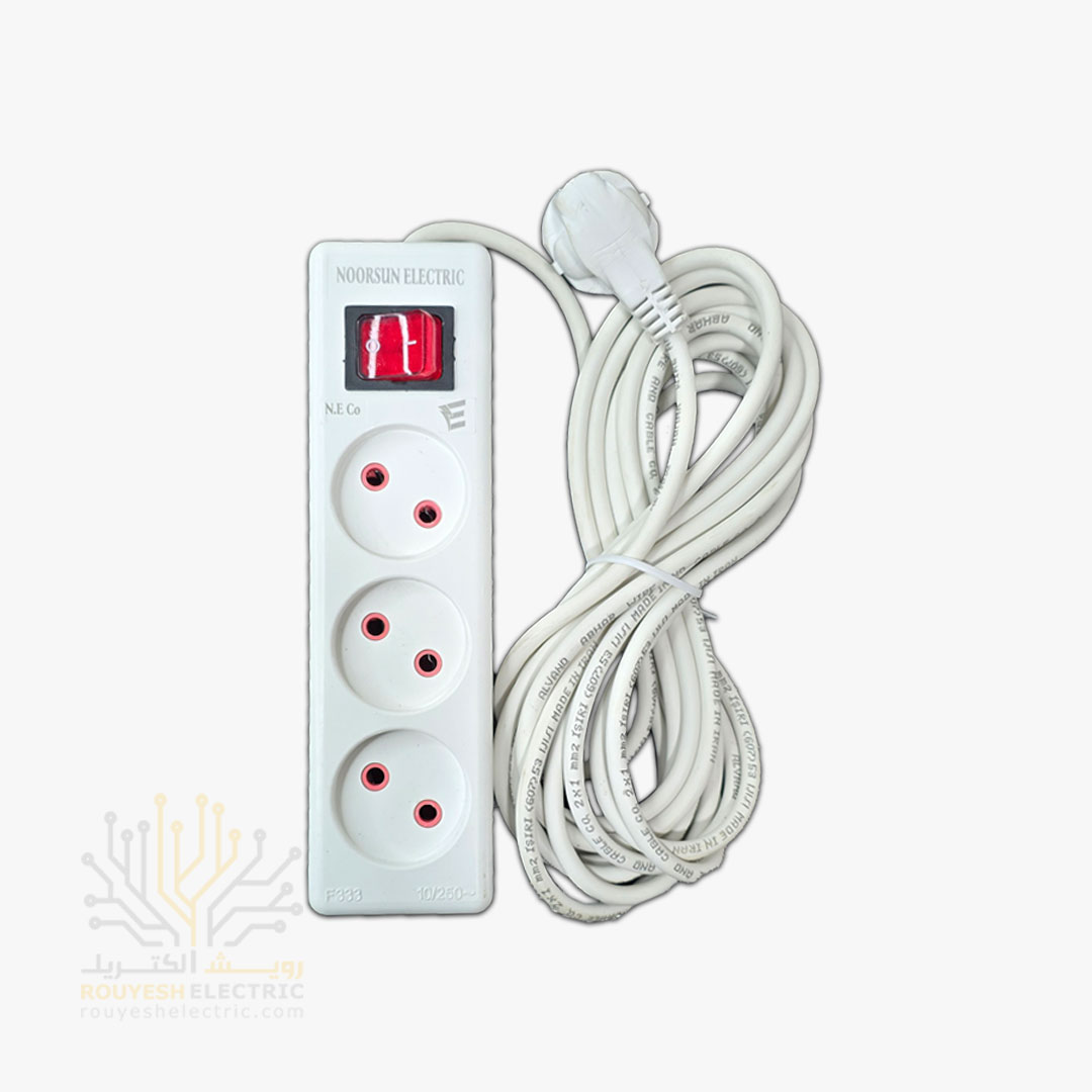 سه راهی برق سیار برند نورسان کلید دار طرح استاندارد بدون کابل