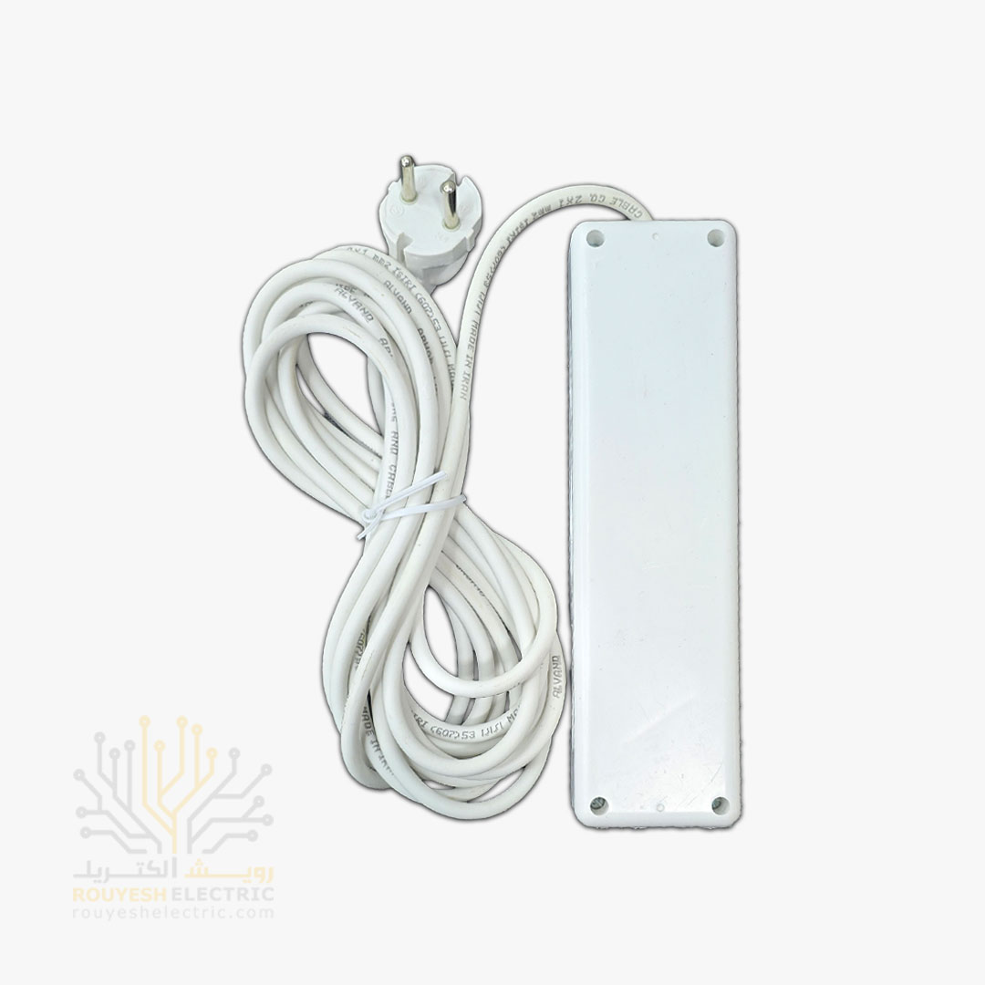 از نظر فنی هم کاملاً استاندارده و ساخت ایرانه، جریان ورودی و خروجی ۲۲۰ ولته و مغزی کابلش مسیه که باعث کیفیت و دوام خوبش می‌شه. شدت جریان ۱۰ آمپره و کابلش ۵ متر طول داره با نمره‌ی ۲x۱، پس فاصله‌ی زیادی از پریز رو هم می‌تونی پوشش بدی. برای خیالت هم ۳۰ روز ضمانت تست داره و تا یه سال هم اگه ازش راضی نبودی، می‌تونی کالای سالم رو پس بدی یا با یه مدل دیگه تعویض کنی.