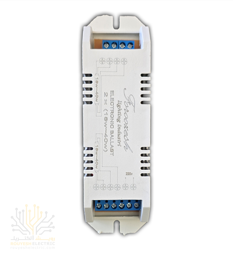این وسیله ساخت ایران هست. ورودی و خروجی جریانش ۲۲۰ ولته، پس به راحتی با برق شهری سازگاره. توان مصرفی اون بین ۱۸ تا ۴۰ واته. روی خودش یه ترمینال ۲ پیچه برای ورود جریان برق داره و همینطور دو تا ترمینال ۴ پیچه برای وصل کردن دو تا لامپ مهتابی یا FPL.
