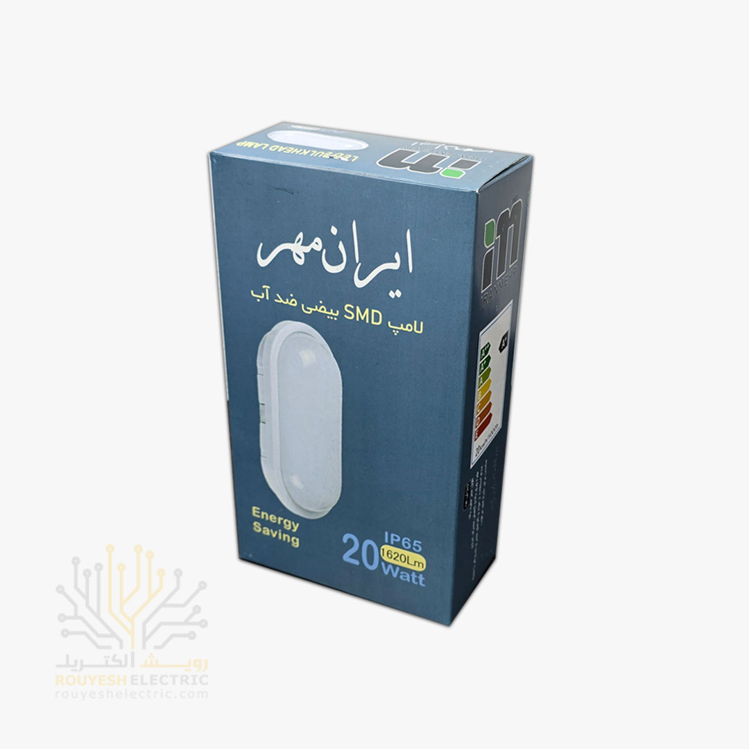 چراغ دیواری ال ای دی 20 وات برند ایران مهر ضد آب مدل بیضی نور مهتابی