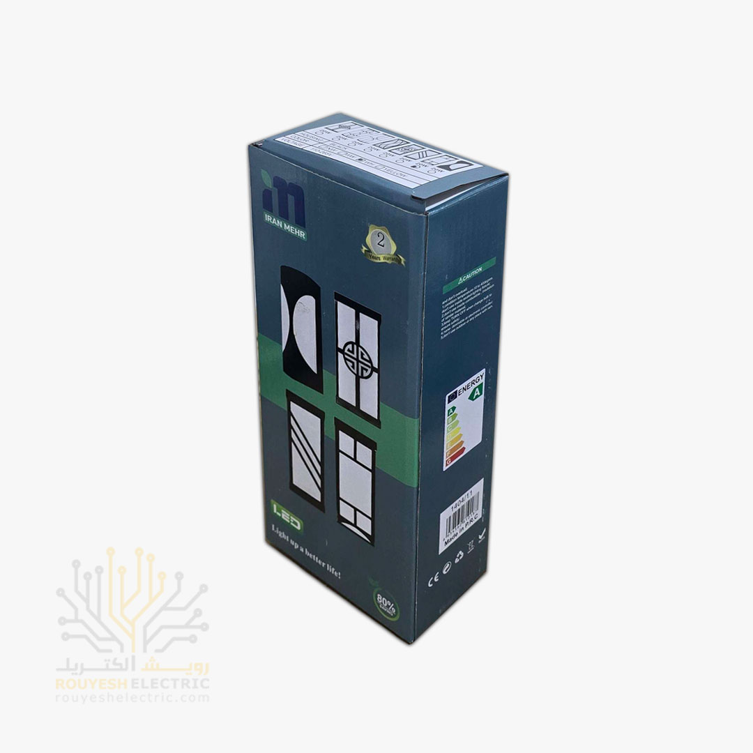 چراغ دیواری دکوراتیو 20 وات برند ایران مهر کد ایران 9.2 بدنه مشکی نور مهتابی 6 ماه گارانتی