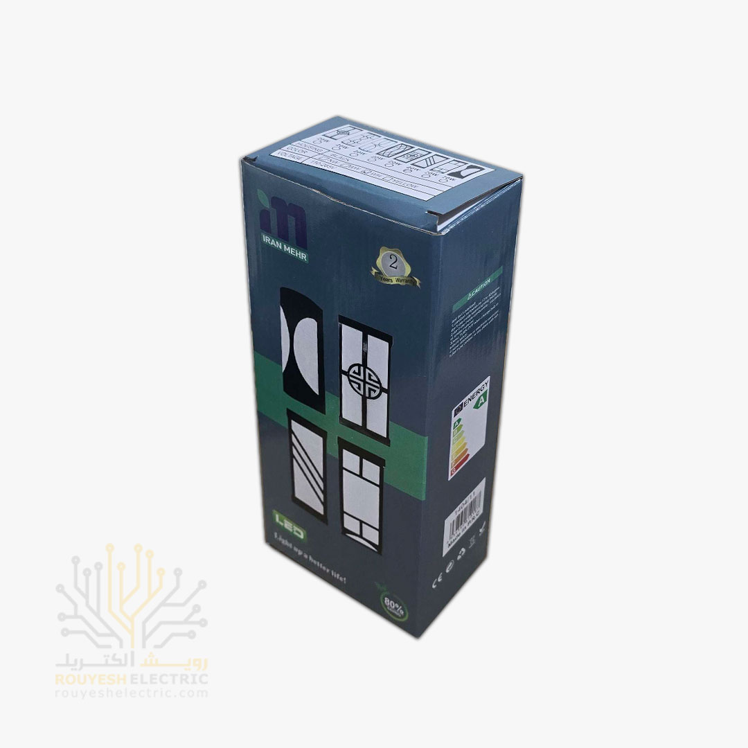 چراغ دیواری دکوراتیو 20 وات برند ایران مهر کد ایران 9.3 بدنه مشکی نور مهتابی 6 ماه گارانتی