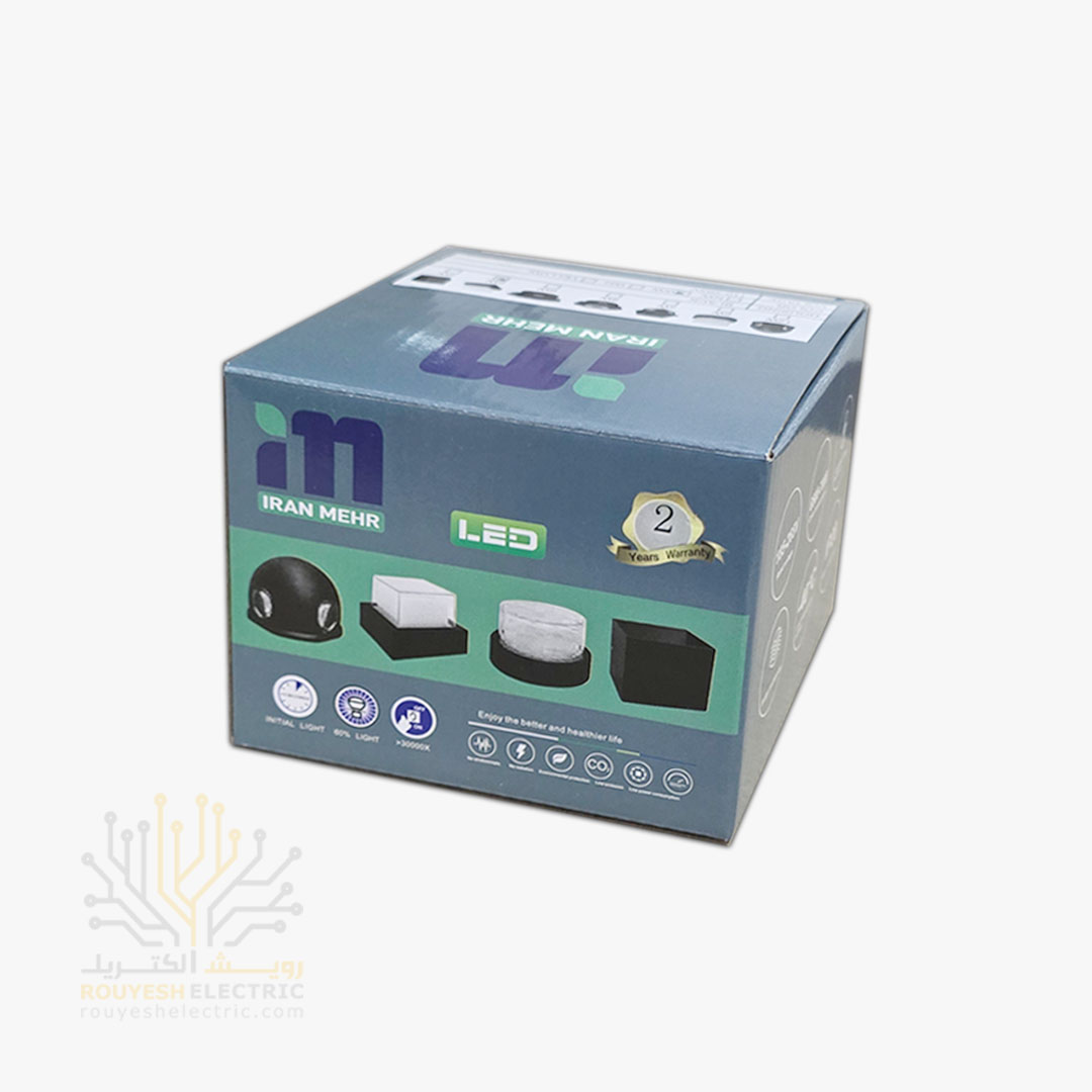 چراغ دیواری دکوراتیو 6 وات برند ایران مهر مدل مکعب یک طرفه کد ایران 21 بدنه مشکی نور یخی