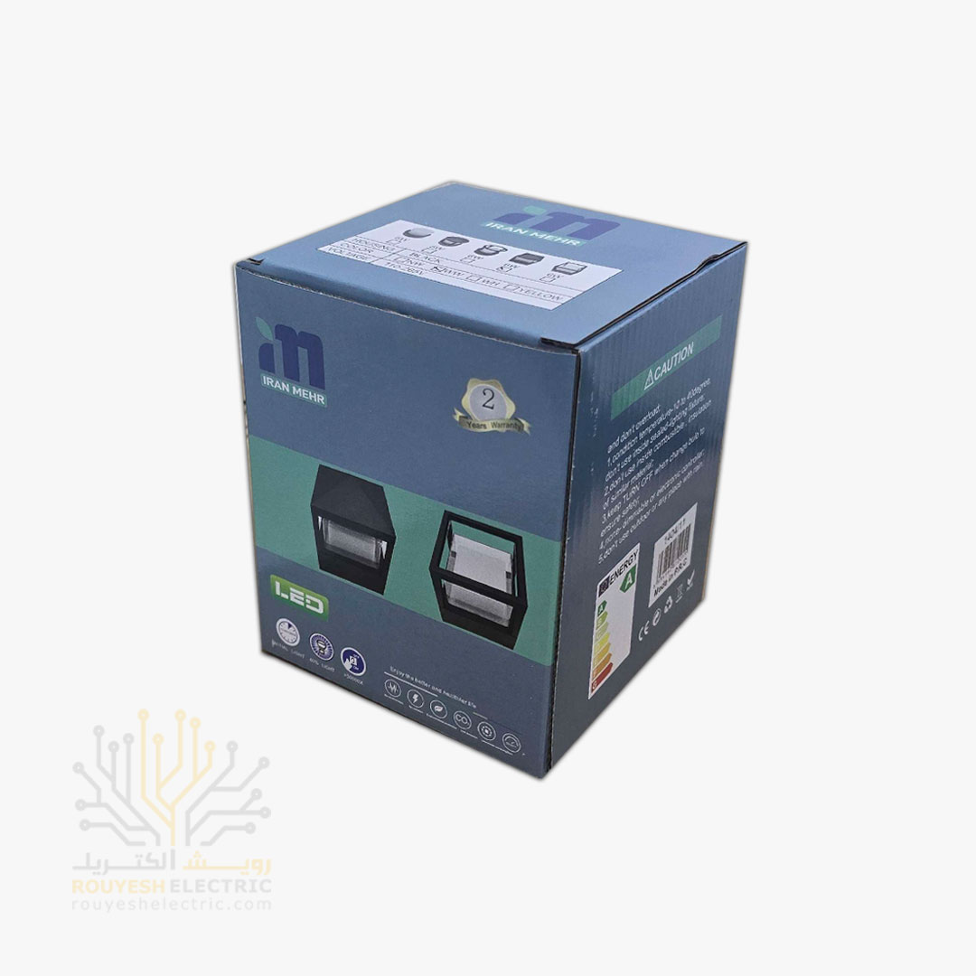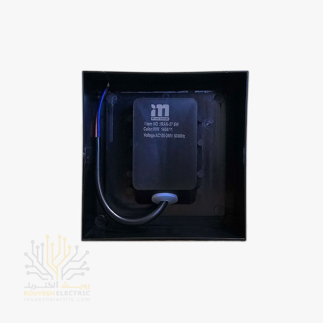چراغ دیواری دکوراتیو 6 وات برند ایران مهر مدل مکعب یک طرفه کد ایران 37 بدنه مشکی نور آفتابی 6 ماه گارانتی