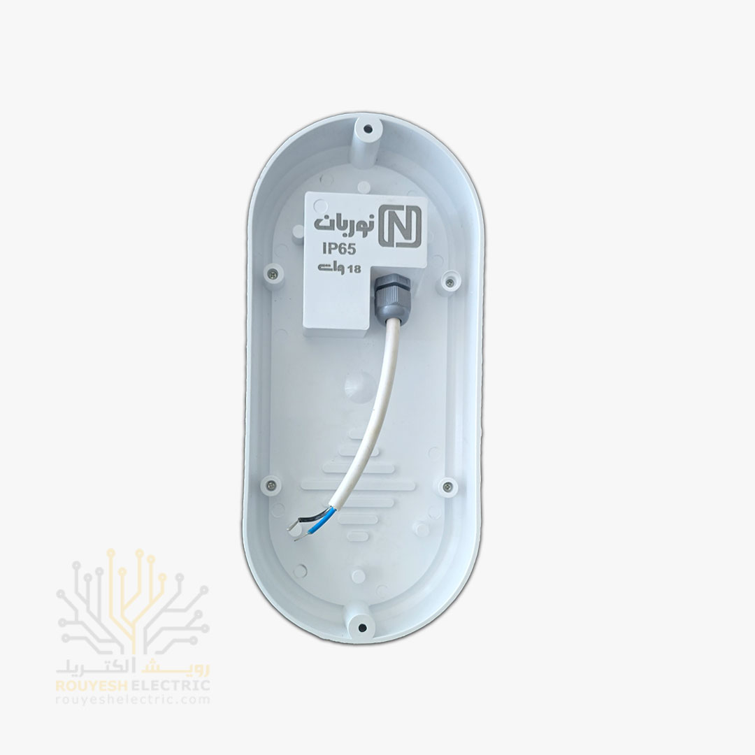 چراغ دیواری ال ای دی 18 وات برند نوربان مدل بیضی ضد آب IP65 مهتابی