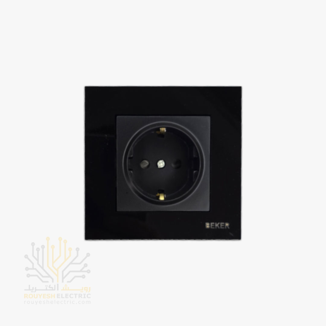 پریز برق ارتدار توکار برند بکر با مغزی پلی کربنات مدل گلس مشکی