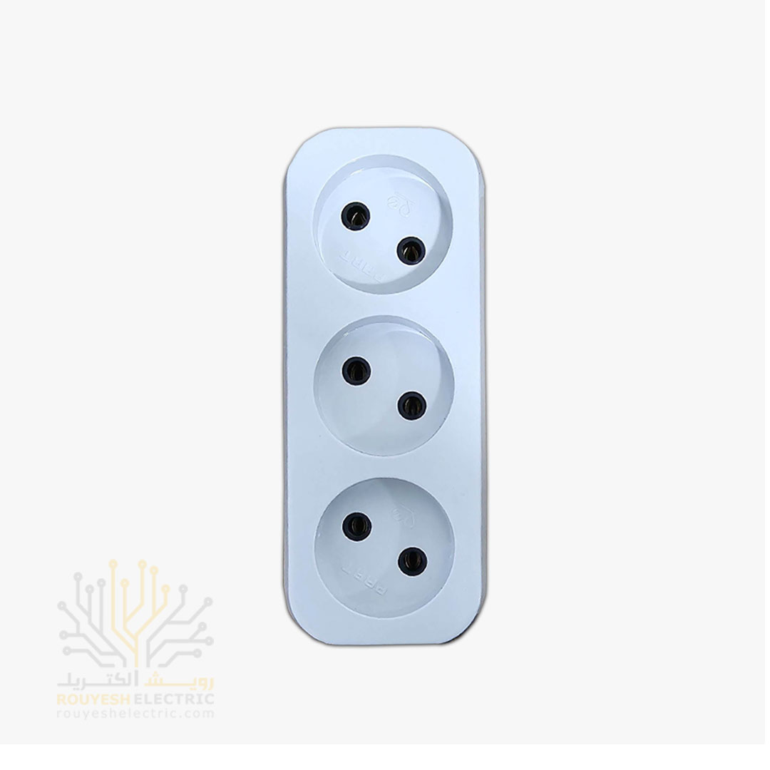 سه راهی برق دیواری برند پارت الکتریک مدل شهاب کد 0523 استاندارد تخت سفید