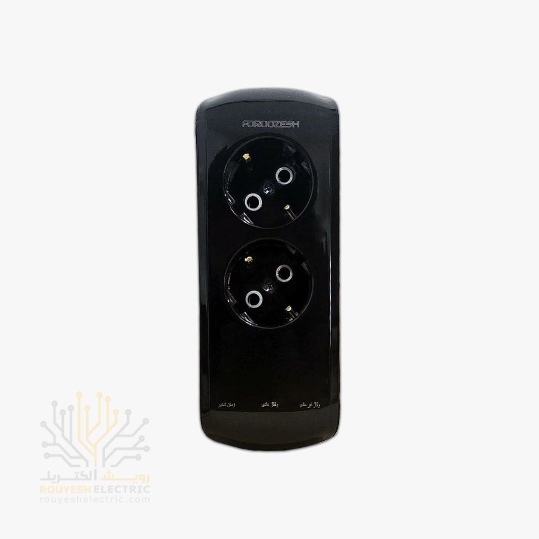محافظ برق لباسشویی و ظرفشویی دیواری دو خانه برند فروزش مدل LT200 لوتوس ارتدار کلید دار بدنه مشکی دیجیتال